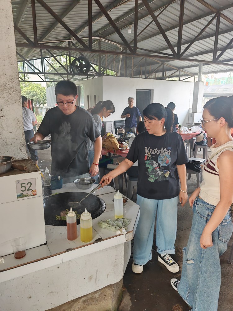 简短的参观结束后,活动进入了别开生面的“重温艰苦岁月”环节:亲身体验革命时期的红军柴火大灶烹饪。会员们分三个小组,分工协作,拾柴生火、洗菜切配、挥铲掌勺……在袅袅炊烟与锅碗瓢盆的协奏曲中,大家分工明确,配合默契,仿佛回到了那段自力更生、团结奋进的峥嵘岁月。虽然过程充满挑战,但各小组欢声笑语始终回荡。