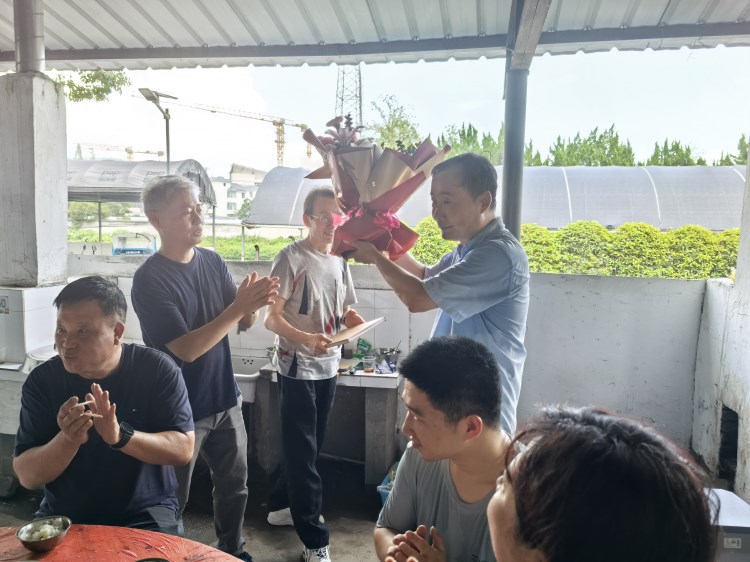 中午,在共同享用自己动手烹制的劳动成果的午餐时分,本次工会活动迎来了一个温馨而感人的高潮。校领导叶青特意利用这个齐聚一堂的机会,为即将荣退的冯鉴老师举行了简短的欢送仪式,他代表学校全体同仁向冯老师献上了饱含祝福的鲜花,对他多年来为学校发展作出的贡献表示衷心感谢,并深情邀请他“常回家看看”,希望他退休后能一如既往地关心、支持学校工作。这份突如其来的惊喜,让冯鉴老师感动不已,现场响起了热烈掌声,浓浓的同事情谊温暖了在场的每一个人。