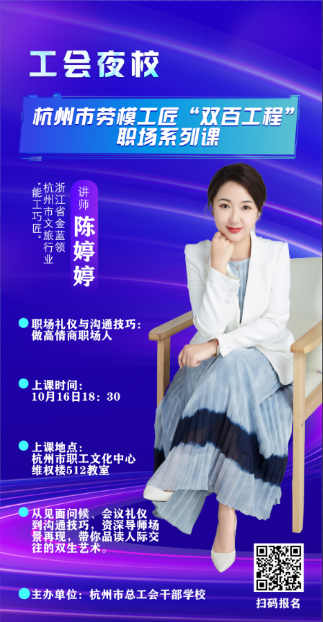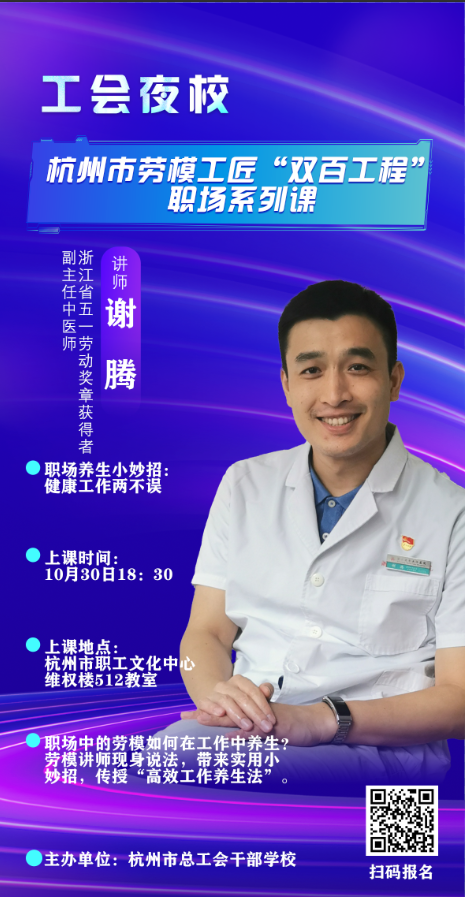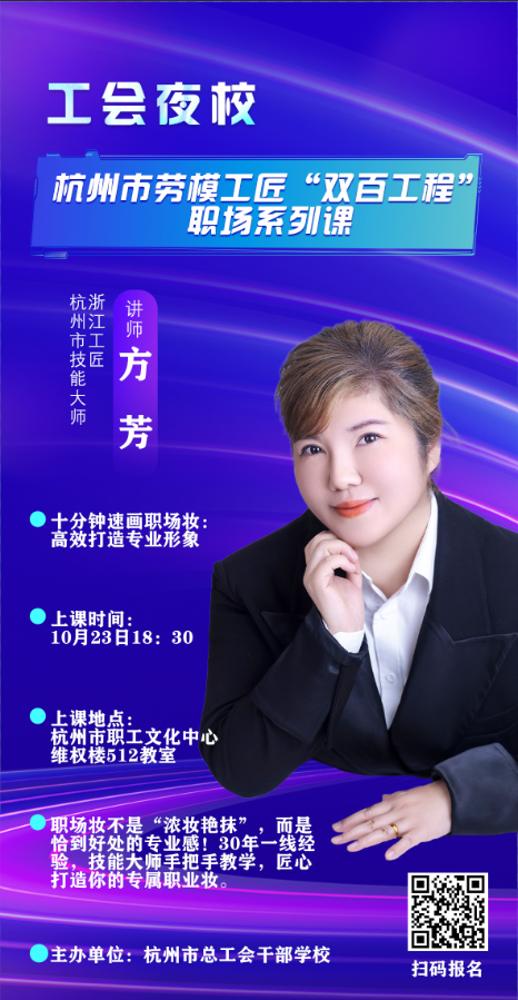 工会夜校来啦!杭州市劳模工匠“双百工程”职场系列课报名啦!劳模工匠讲师带你玩转职场。